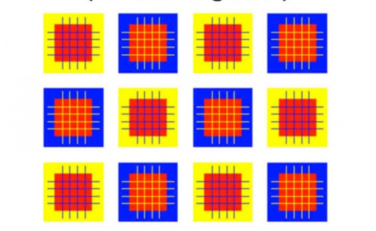 Poate vei fi tentat să spui că sunt mai mult de patru culori, însă nu aceasta este soluția corectă. În afară de alb, sunt doar trei culori în iluzia optică, însă pot părea mai multe pentru că apar pe fundaluri diferite.