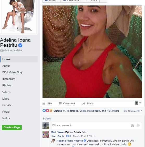 "Dacă acest comentariu vine din partea unei persoane care are 2 papagali la poza de profil, pot înțelege multe", i-a răspuns Adelina, punând-o la punct pe interlocutoarea sa.
