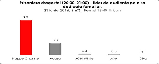 Serialul Prizoniera Dragostei a înregistrat cota de piaţă comparabilă cu cea a unui post generalist: cu 9,3% market share, Happy Channel s-a situat în vârful ierarhiei televiziunilor dedicate publicului feminin. Acasă TV a avut o cota de piaţă de trei ori mai mică.