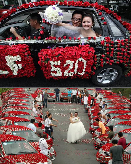 Cei doi tineri din Chongqing, China, au avut parte de un eveniment ca-n povești. Întrucât știa că partenera lui își dorește o nuntă romantică și că, în plus, e mare iubitoare de trandafiri, Wang nu s-a lăsat până ce nu i-a cumpărat acesteia florile preferate. Nu mai puțin de 99,999 de trandafiri.