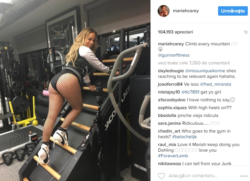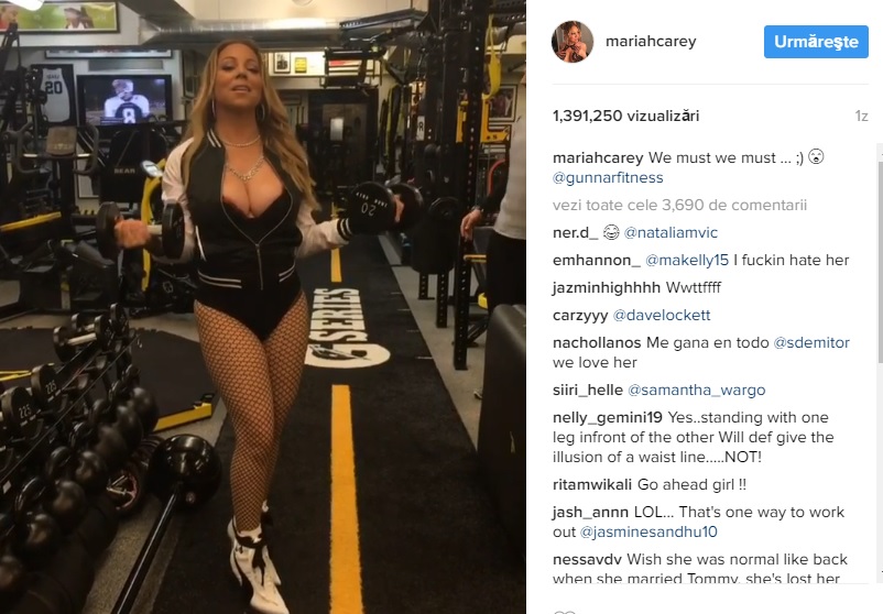 Amatoare de apariții sexy, Mariah Carey nu-și schimbă stilul nici măcar când merge la sala de sport! În timp ce toată lumea era îmbrăcată corespunzător, artista a venit pe tocuri, în bikini și cu un decolteu uriaș. Prezența ei a atras toate privirile!