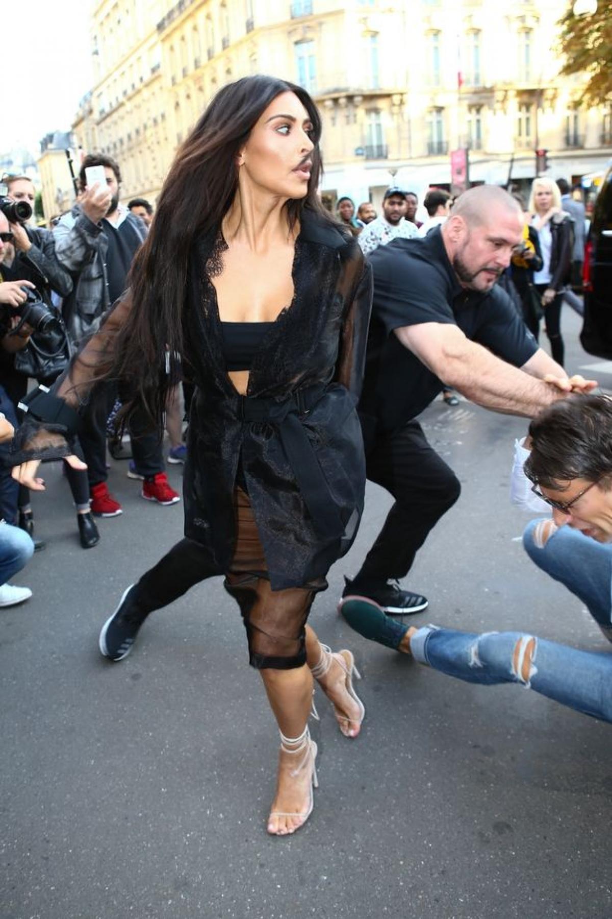 Incident ilar petrecut, miercuri, in Paris! Iubita Lui Kanye West, Kim Kardashian, a trecut prin emoții mari în momentul în care un fan s-a apropiat prea mult de ea.