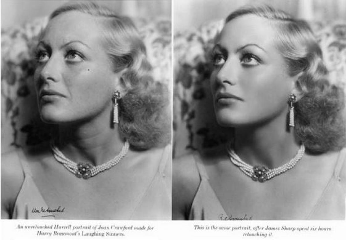La una din fotografiile promoționale pentru filmul „ Laughing Sinners” cu Joan Crawford, s-a lucrat șase ore! De ce atât de mult timp? Chiar dacă diva a avut nevoie doar de îndepărtarea unor riduri și puțină strălucire, mașina de retușat folosită nu avea nici pe departe abilitățile unui program de calculator, ca acum.