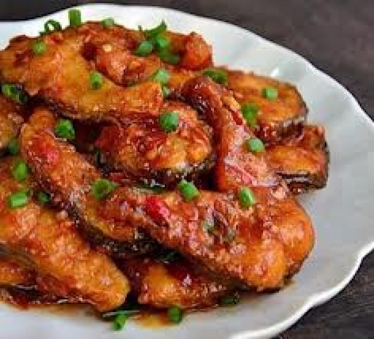 Crapul se spală, se curăță, se taie felii. Se sărează și se dă prin făină.