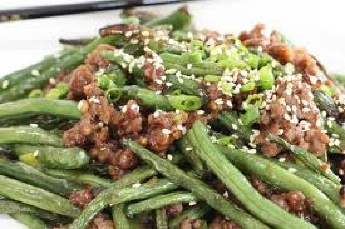 Uleiul de susan se încinge, se pune uleiul, apoi fasolea curăţată. Când e gata se pune carnea, iar când e făcută sosul de soia şi condimentele.