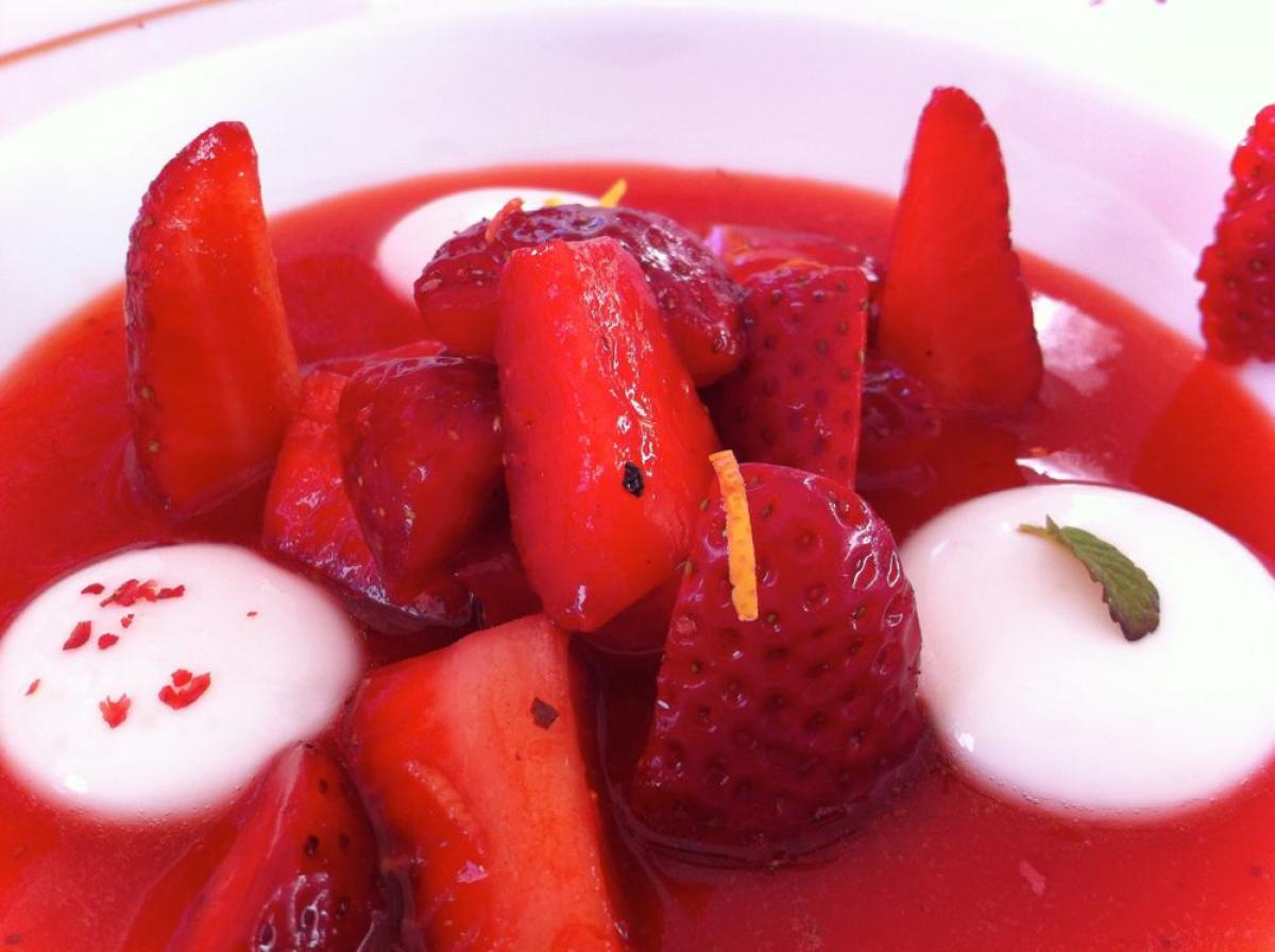 Supă-cremă rece de căpșune cu piper roșu