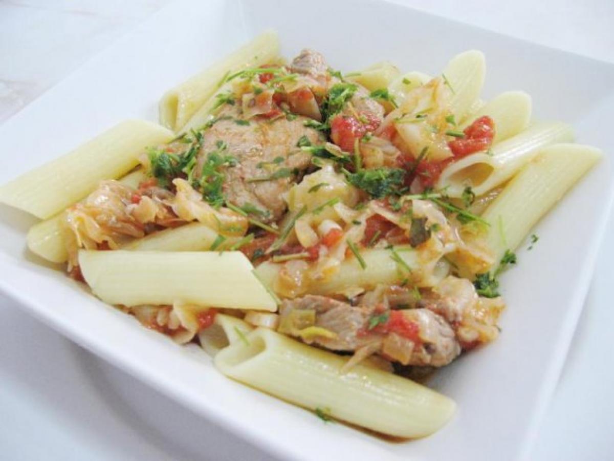 Carnea de vită se taie în fâșii foarte subțiri și se înăbușesc cu ceapă și țelină.