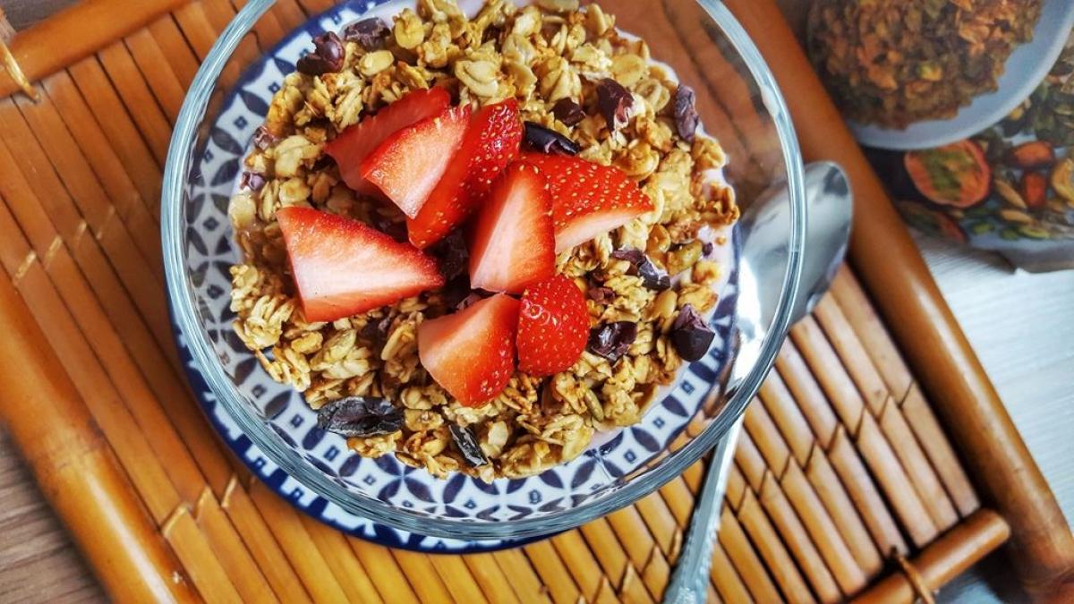Sănătatea de vineri: Mic dejun cu granola, iaurt cu căpșuni și boabe de cacao