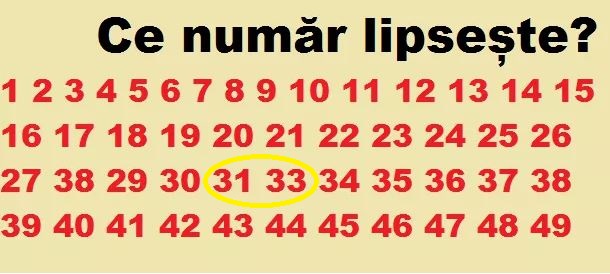 Numărul care lipsește este 32, după cum poți vedea mai jos: