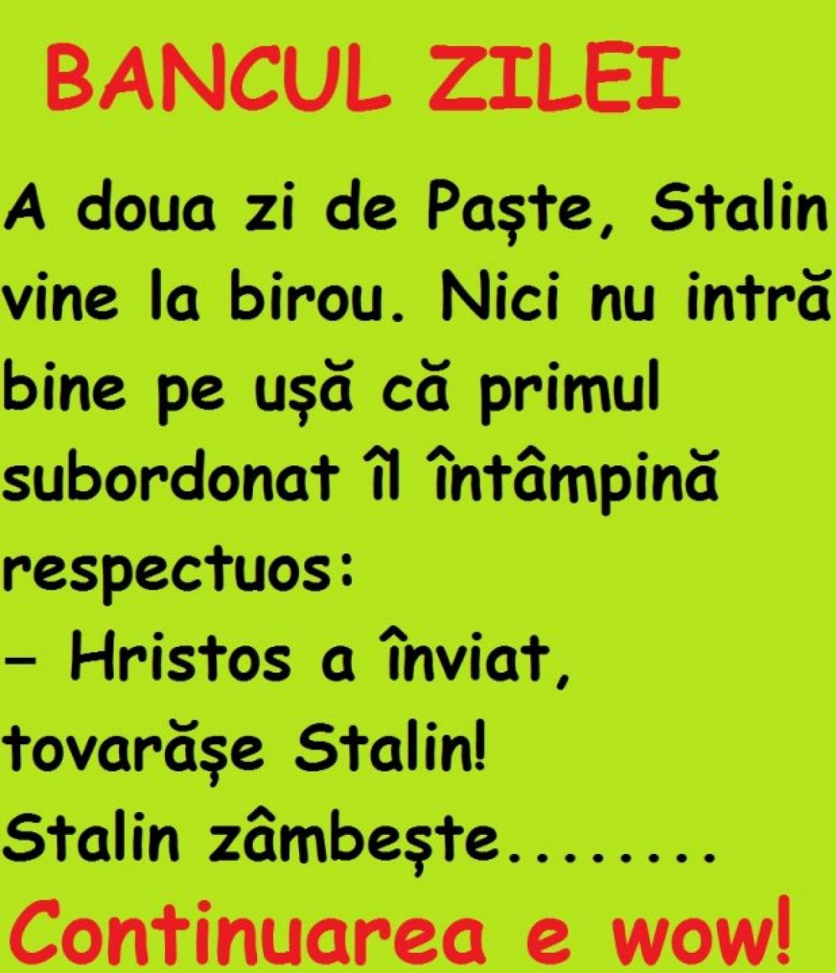BANCUL ZILEI! A doua zi de Paște, Stalin vine la birou