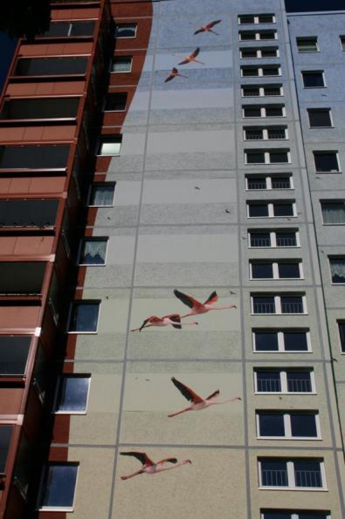 O companie franceza a acoperit mai mult de 20.000 de metri patrati cu imagini din natura, realizand cea mai mare pictura murala din lume! Pasari, caprioare, animale salbatice - toate apar pe suprafata cladirilor locuite, ajutandu-le sa se confunde cu fundalul natural.