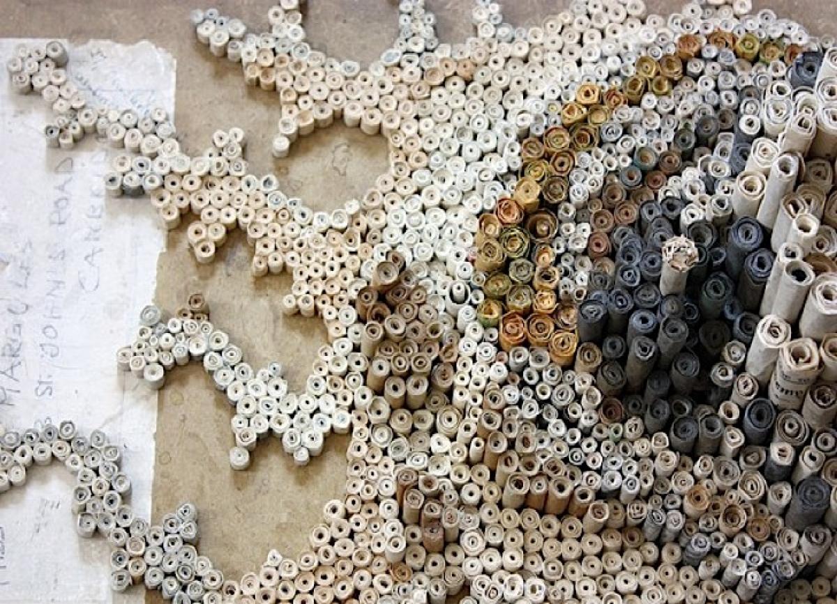 Folosind hartia care de altfel este irosita, ea o ruleaza si o lipeste pentru a construi ceva ce imita o crestere biologica.
