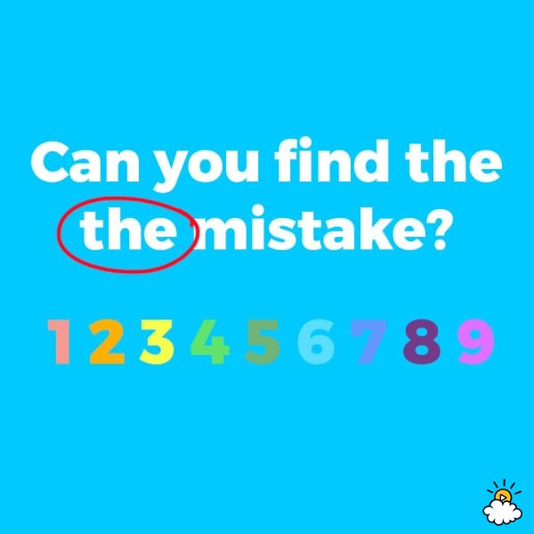 Greşeala este strecurată chiar în întrebare, respectiv "Can you find the mistake?", unde the apare de două ori. Vezi în foto, de mai jos!