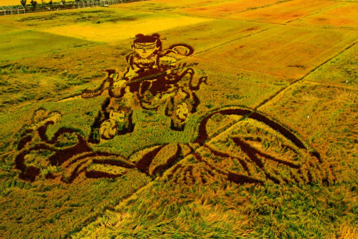 Americanii au desene imense scrijelite în nisip, chinezii au picturi 3D realizate în... orez! Culturile vestite din Shenyang au primit decorațiuni bizare făcute parcă de extratereștri