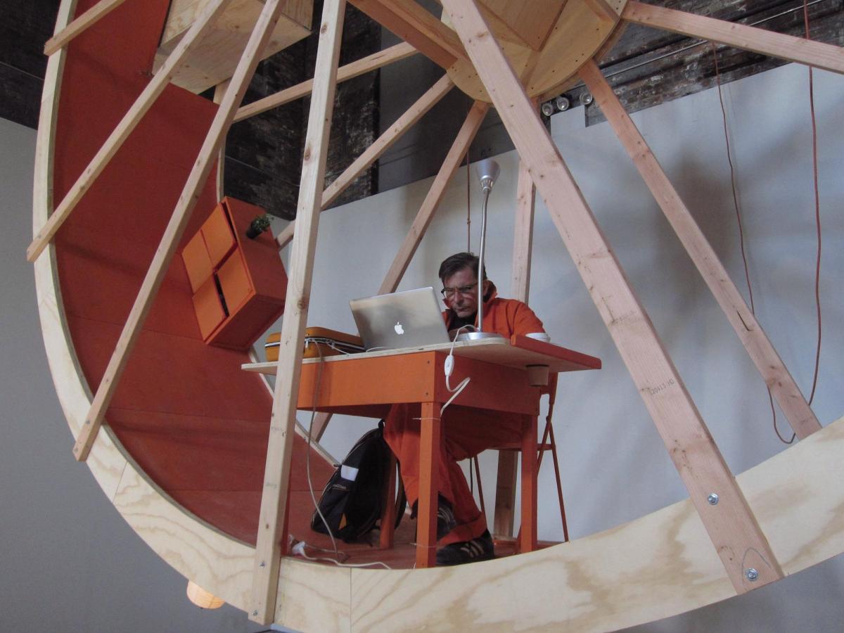 În interiorul unei galerii din Brooklyn, cei doi își petrec întreaga activitate. Ward Shelley, în vârstă de 63 de ani și Alex Scweder, în vârstă de 43, au aranjat o casă intitulată "In Orbit".