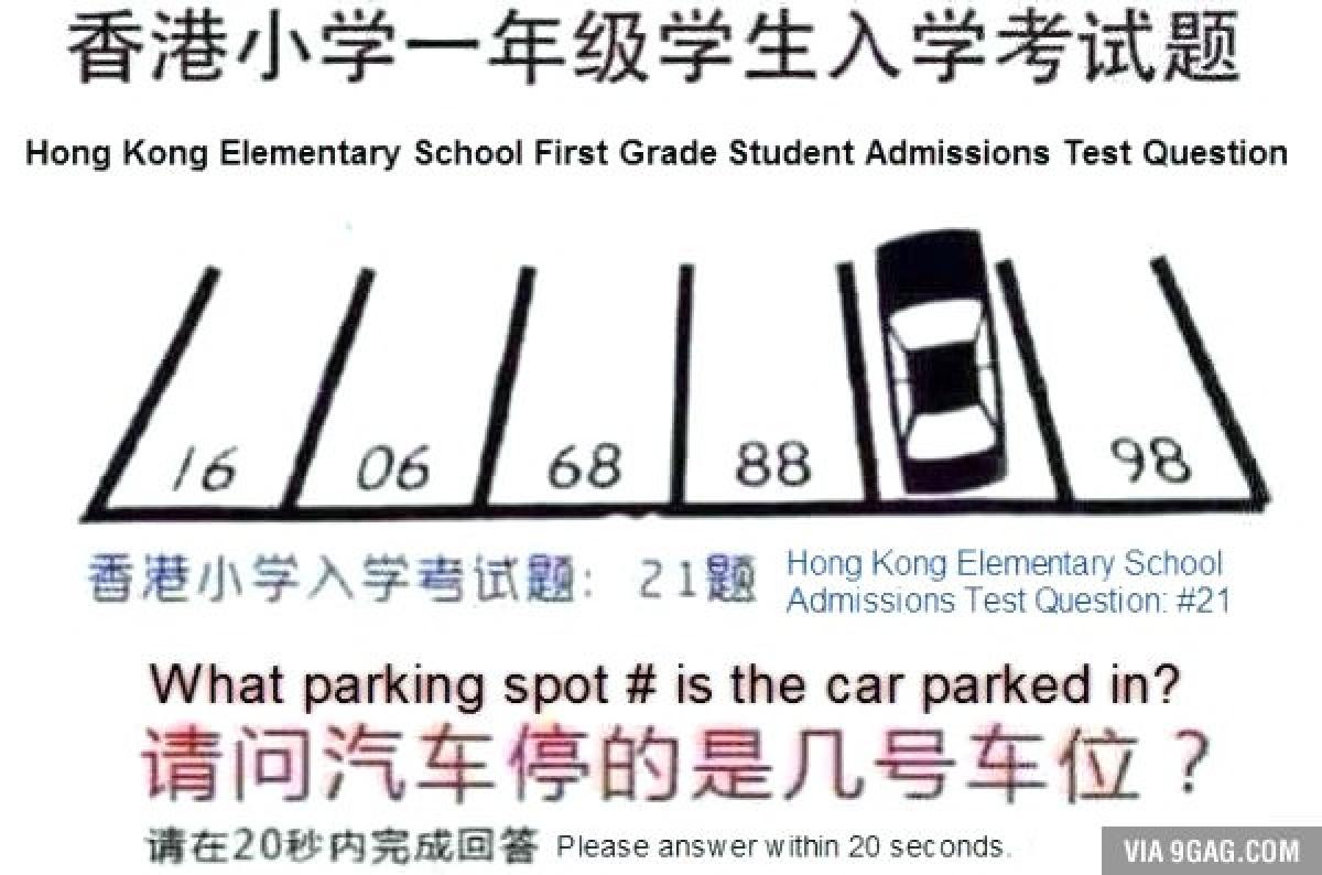Probleme de tipul 1+1 = 2 sunt prea ușoare pentru elevii de clasa întâi dintr-o școală din Hong Kong. Acolo, se poartă testele logice, iar întrebările pun în dificultate chiar și un adult!