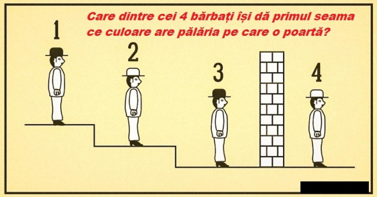 Care din cei patru bărbați își dă seama primul ce culoare are pălăria pe care o poartă?