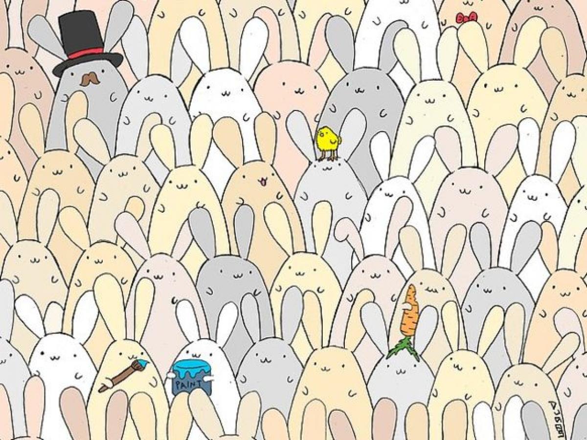Imaginea cuprinde numeroși iepurași. Printre ei se află însă și un ou. Tot ce trebuie să-l faci este încerci să-l identifici cât mai repede.