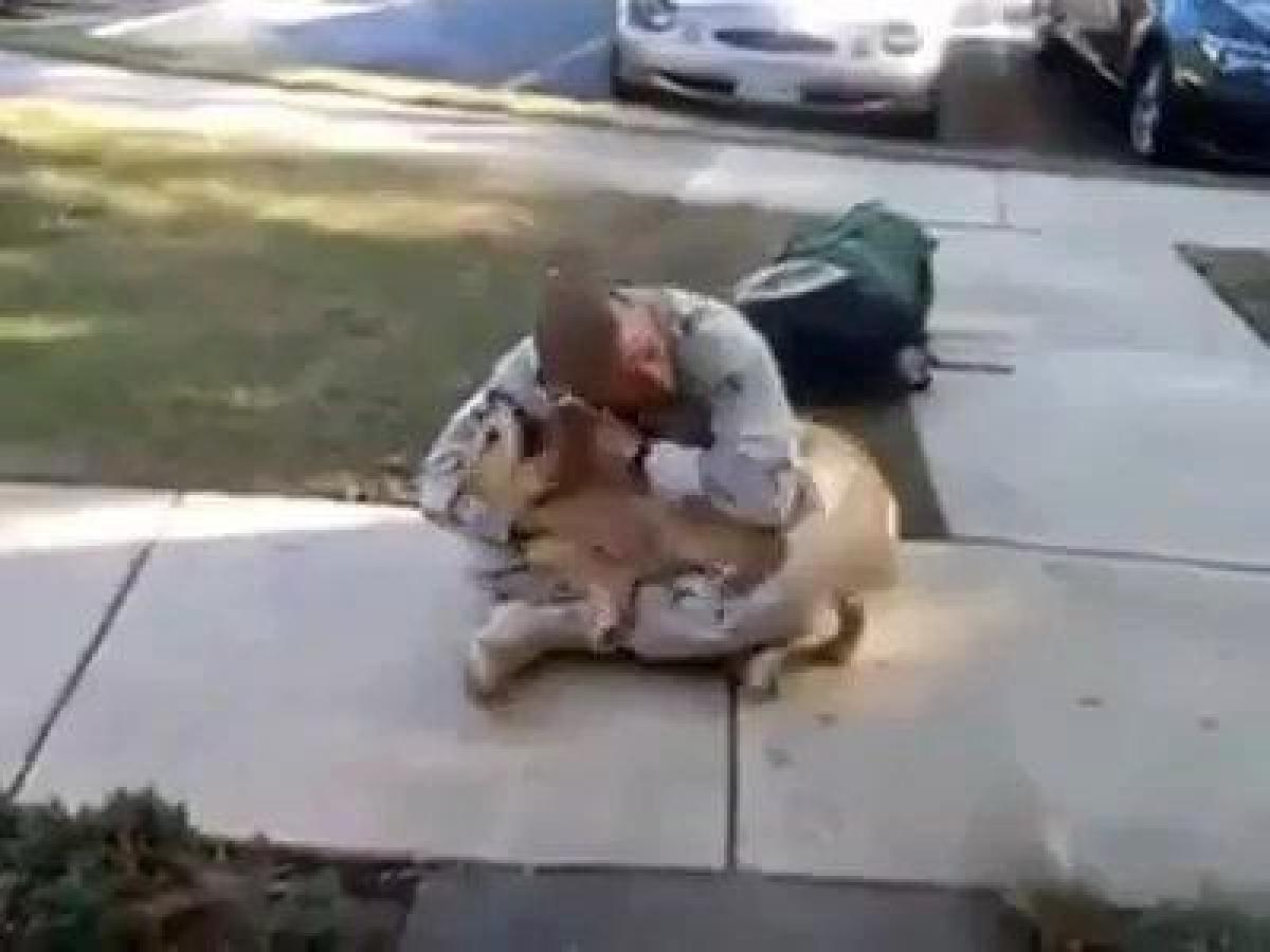 VIDEO! Cum se bucura un catel de intoarcerea de pe front a stapanului