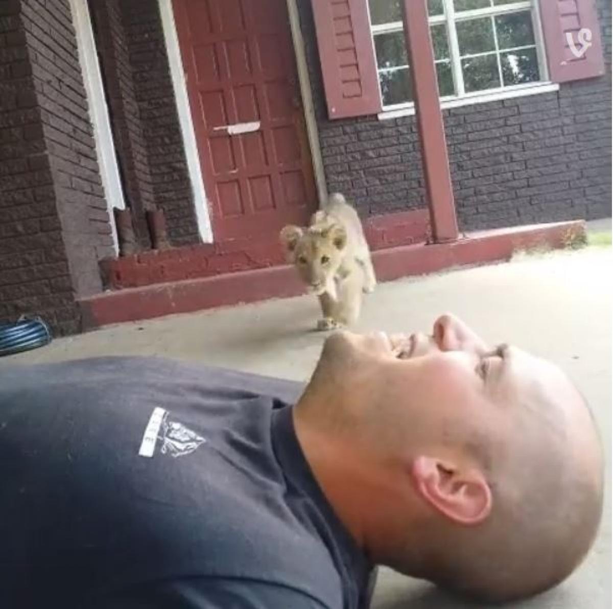 VIDEO! Nu e mai diferit de o pisică! Trebuie să vezi cum se joacă un pui de leu cu îngrijitorul său!