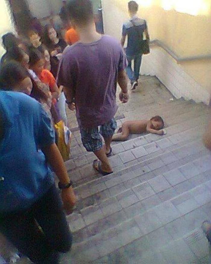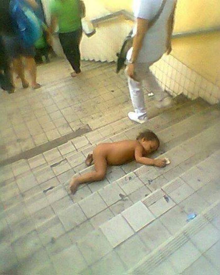 Acest bebeluș zace dezbrăcat pe scările de la metrou și nimeni nu-i dă nicio ATENȚIE! Imagini cu un puternic IMPACT EMOȚIOANL