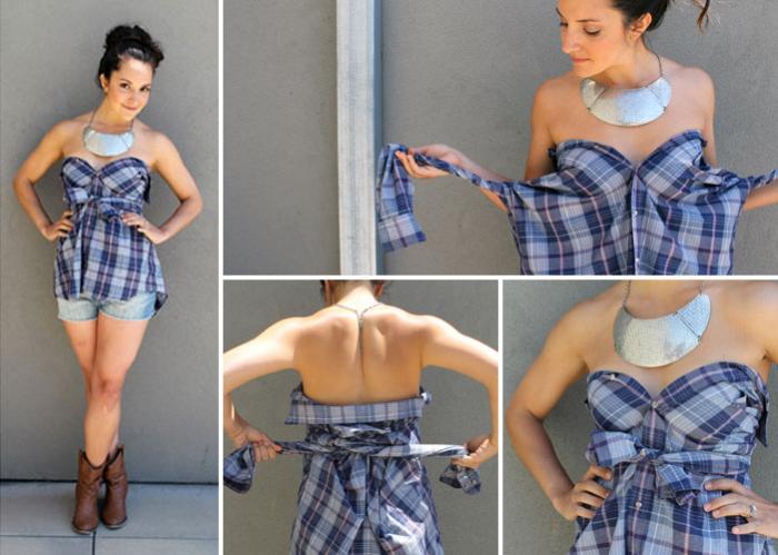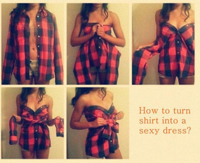 Dacă nu mai știi ce să porți iar cămîșile iubitului sunt pe aproape, joacă-te de-a designerul pentru o zi! Transformă una din cămășile lui într-o rochie super sexy!