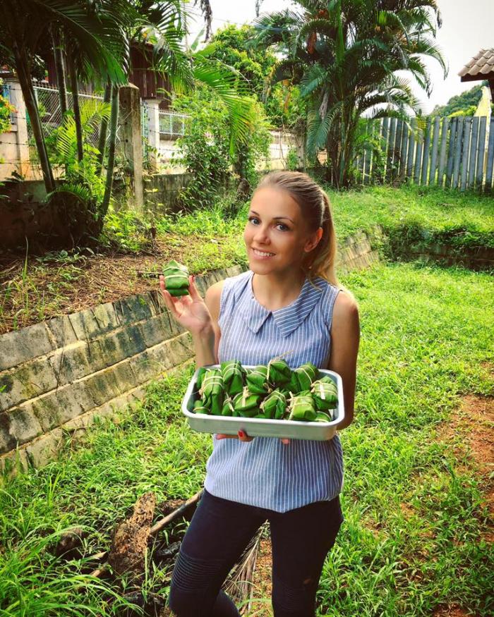 Actrita din ”O gramada de caramele” a avut ceva emotii cand a hranit doi elefanti uriasi.