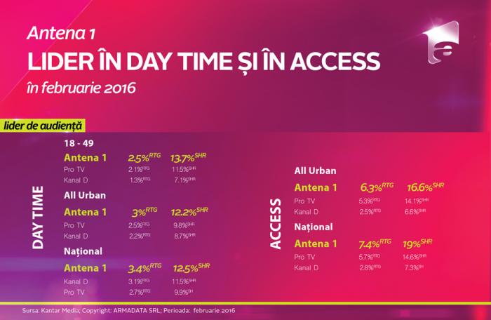 Televiziunile Grupului Intact sunt lider de audienţă pe toate intervalele orare, în rândul telespectatorilor din întreg mediul urban.