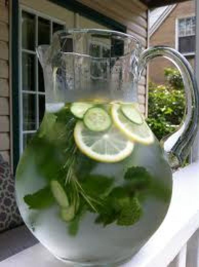 Apă cu lămâie, castravete şi mentă