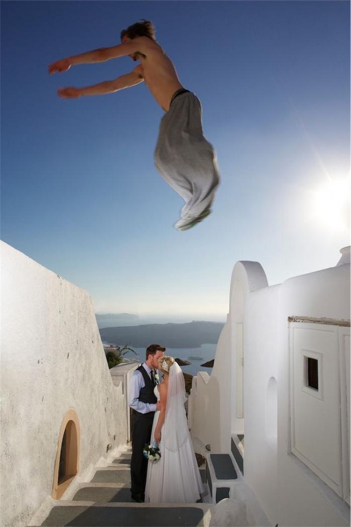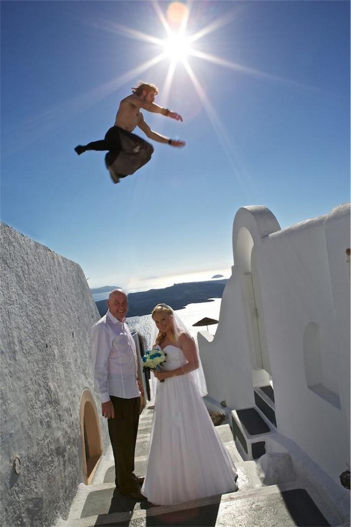 Au călătorit până în Grecia să facă o fotografie perfectă în ziua nunții. Și au avut parte de musafiri neinvitați!