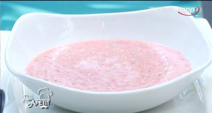 La Don Apetit, emisiune difuzată de Happy Channel de luni până miercuri, de la 12.30, Vlad Gherman a avut-o invitată pe Ligia Pop, unde a gătit supă raw de roșii și caju.