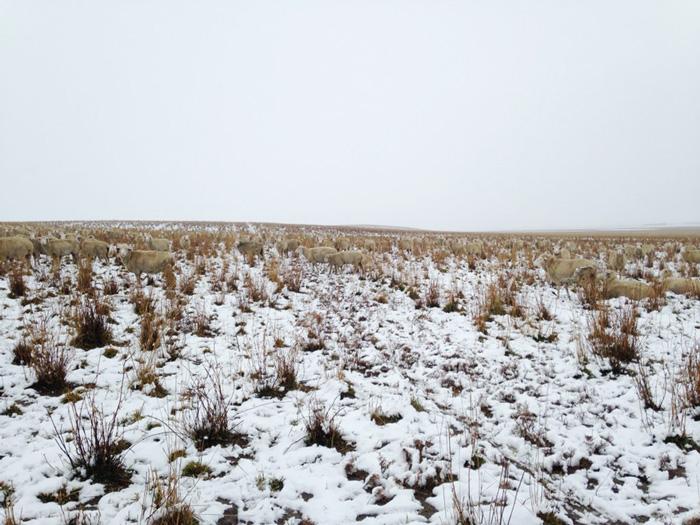 La prima vedere, această fotografie pare că prezintă un simplu peisaj, dar dacă îţi încordezi privirea observi că există, de fapt, sute de oi în această imagine, mai precis 550 de oi inteligent deghizate între iarbă şi zăpadă.