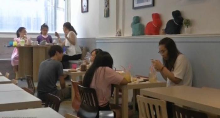 Noua moda la Hong Kong: cafenelele cu iepurasi. Patronii localului aflat intr-un mall au salvat urecheatii de pe strazi si i-au adus in cafeneaua lor.
