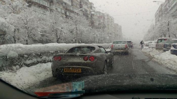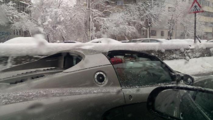 Ploieștiul s-a aflat sub cod portocaliu de viscol weekend-ul trecut, dar asta nu l-a împiedicat pe un șofer excentric să iasă la o promenadă cu mașina decapotată, în centrul orașului.