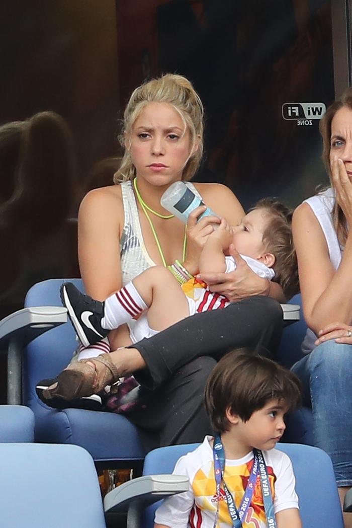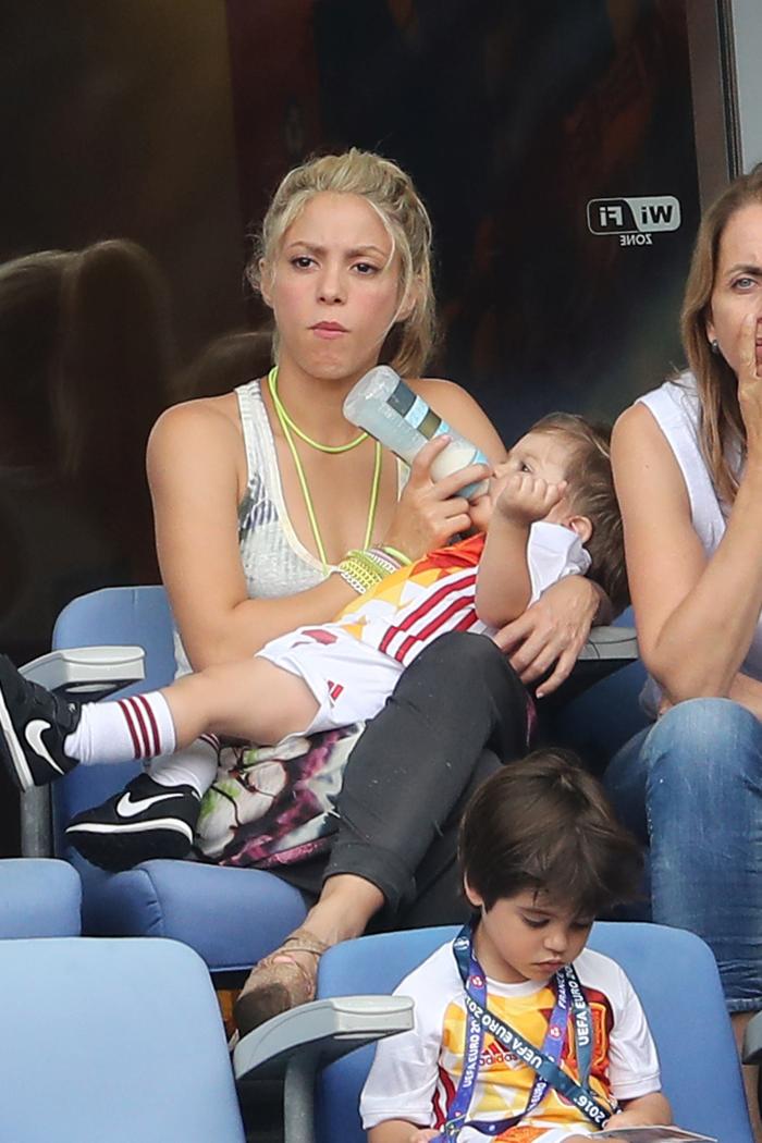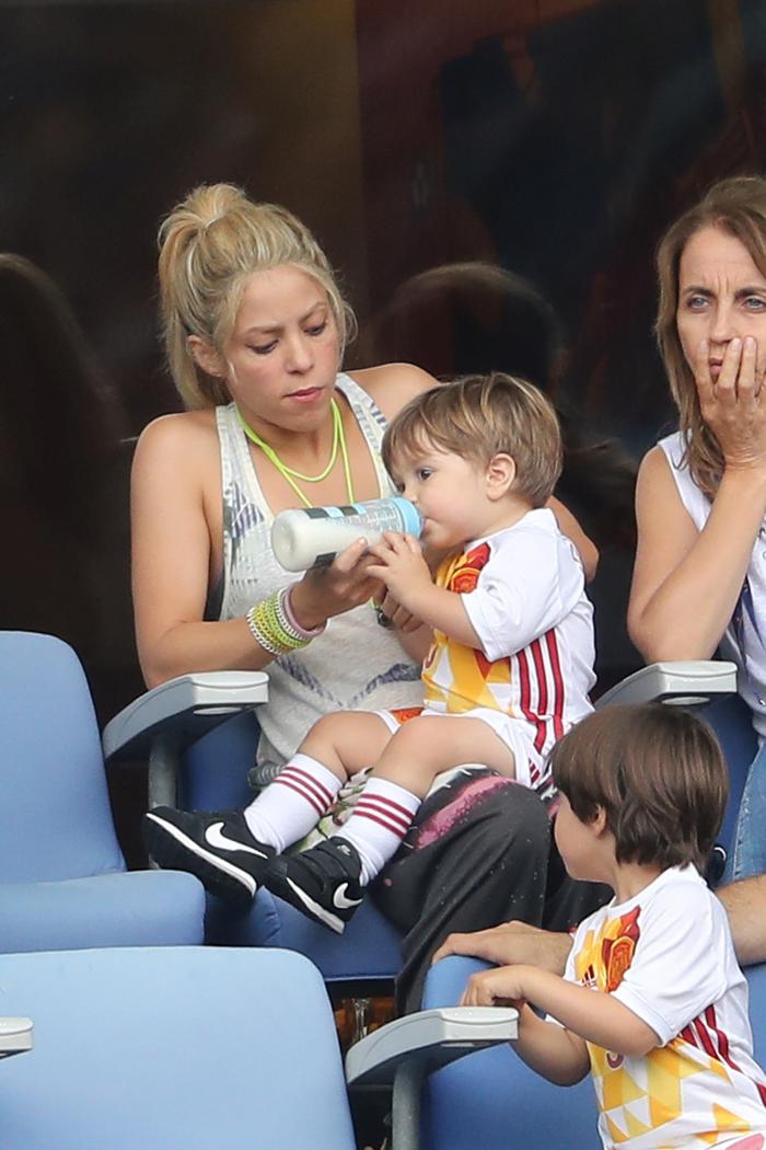 Când joacă Gerard Piqué, toată familia se adună. Așa a fost și luni seara, la meciul Italia-Spania. Partenera de viață a acestuia, Shakira, și cei doi copii ai lor, Sasha și Milan nu au ratat ocazia de a fi prezenți pe stadion.
