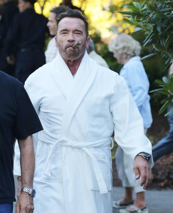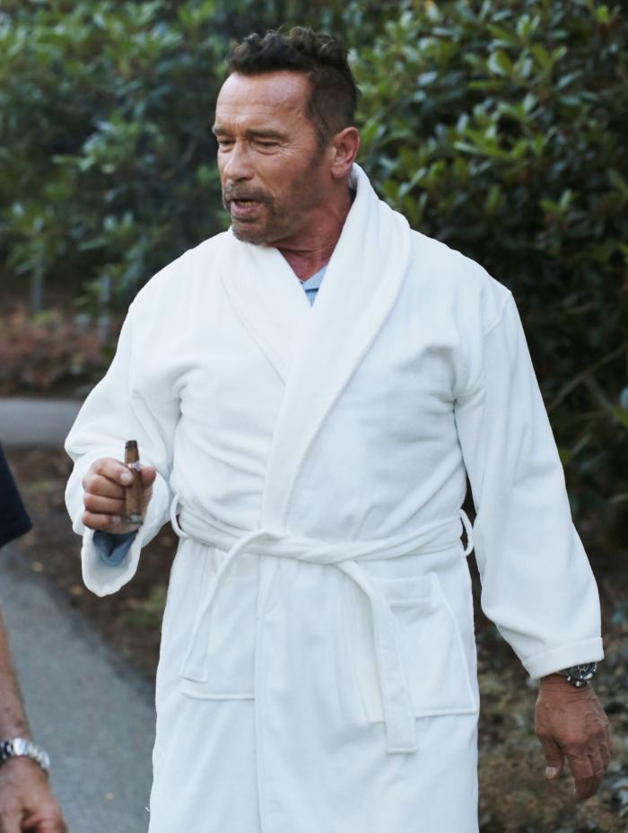 Paparazzii au stat pe urmele lui și l-au surprins pe vestitul "Terminator", ieșind la plimbare, doar în halat de baie. Totul are însă și o explicație. Arnold Schwarzenegger filmează, zilele astea, pentru o nouă producție thriller, în care joacă.