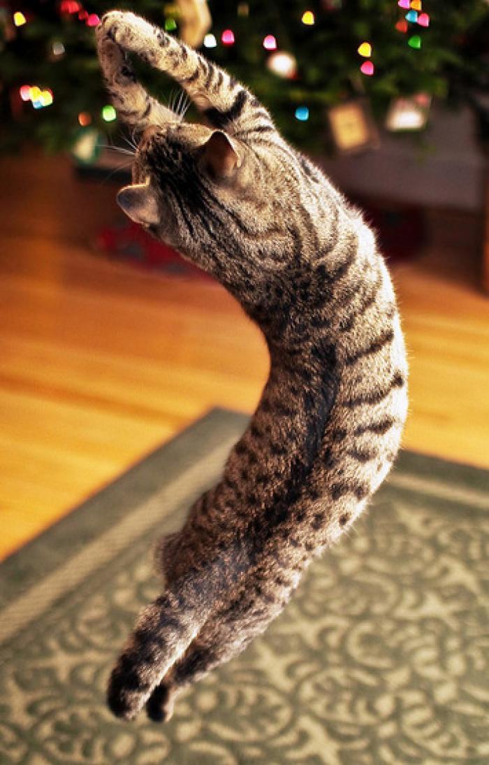 Se pare că bradul de Crăciun nu reprezintă un motiv de bucurie doar pentru oameni, ci şi pentru... pisici!La fel ca nişte copii, pisicile sunt fascinate de luminile colorate, sunetele şi aromele noi oferite de bradul de Crăciun.