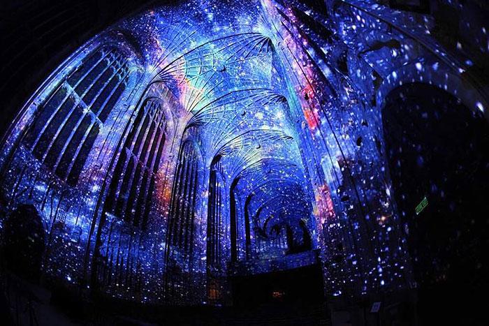 Miguel Chevalier, un artist de proiecţie digitală, a transformat Sainte Chapelle sau Catedrala Sfântă din Paris într-un loc de poveste. Proiecţiile, special concepute pentru interiorul faimoasei capele, se armonizează perfect cu arhitectura gotică a clădirii, veche din secolul al XVI-lea.
