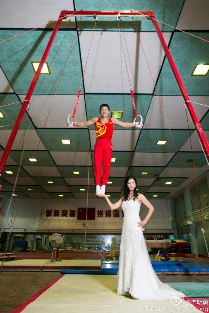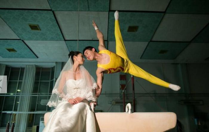 Imagini INEDITE! S-a însurat agățat de inele, paralel cu solul!