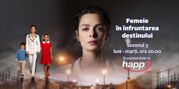 Happy Channel difuzează în premieră cel de-al treilea sezon al serialul ”Femeie în înfruntarea destinului”, în fiecare luni și marți, de la ora 20.00.