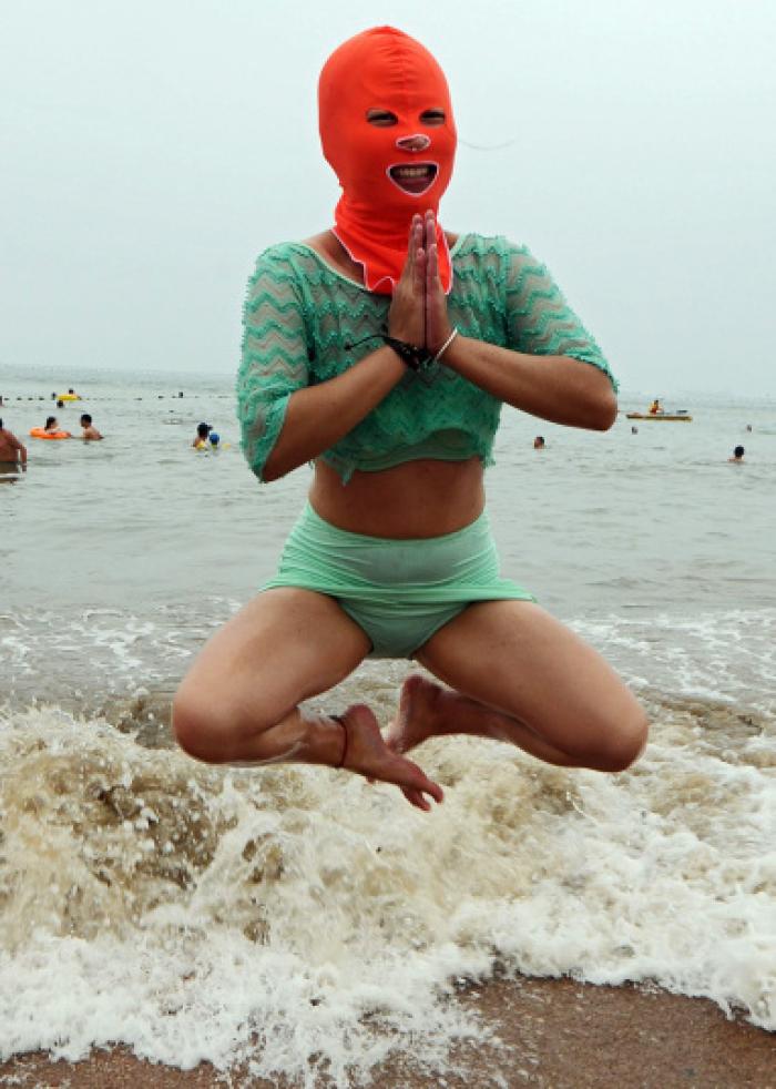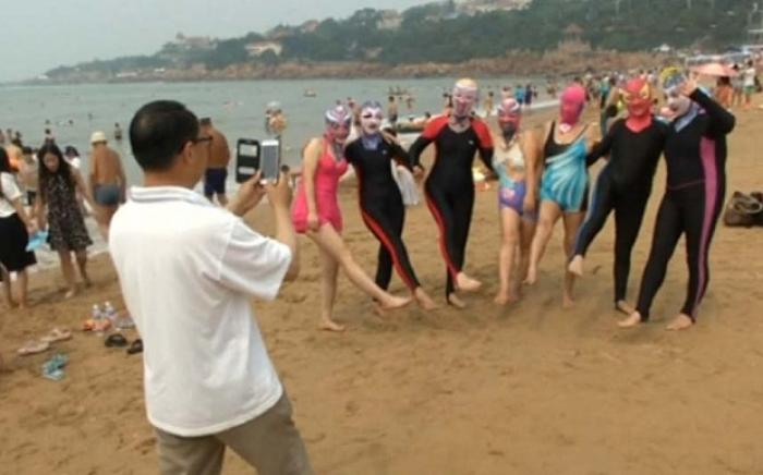 Noua modă pe litoralul din China: Facekini. De ce stau chinezoaicele cu fața acoperită la plajă