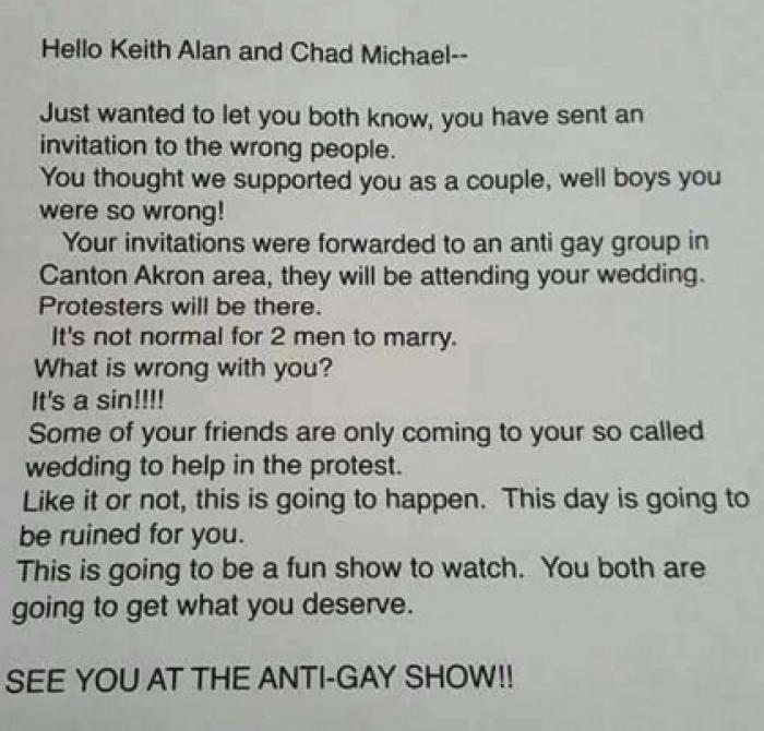 Asta le va ruina nunta complet! Răspunsul primit de un cuplu GAY la invitația de NUNTĂ te va lăsa fără cuvinte!