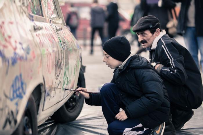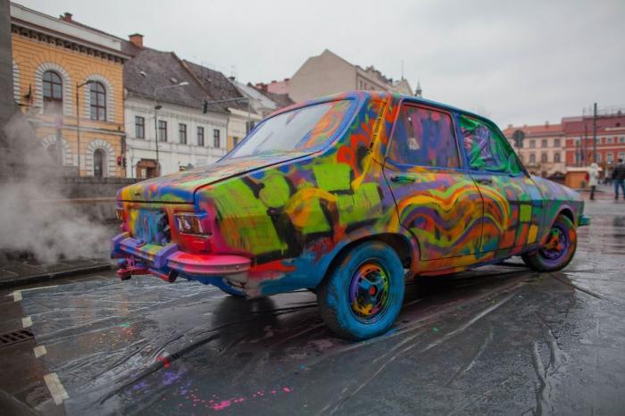 A vrut să stimuleze creativitatea oamenilor, aşa că a abandonat o Dacie în centrul Clujului, lângă care a lăsat spray-uri pentru grafitti şi alte ustensile creative. Rezultatul? O maşină ca o operă de artă!