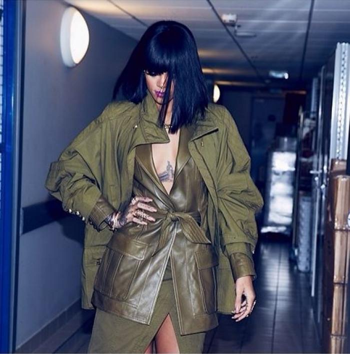 Ca o adevărată trendsetteriță, Rihanna a ajuns la prezentarea Balmain din timpul Săptămânii Modei de la Paris doar într-un trenci de piele... și cam atât