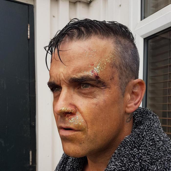 Robbie Williams BĂTUT? Cântărețul a apărut cu o rană pe ARCADĂ