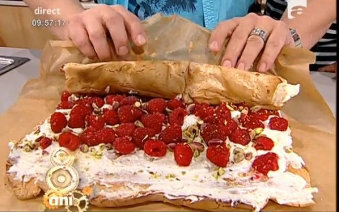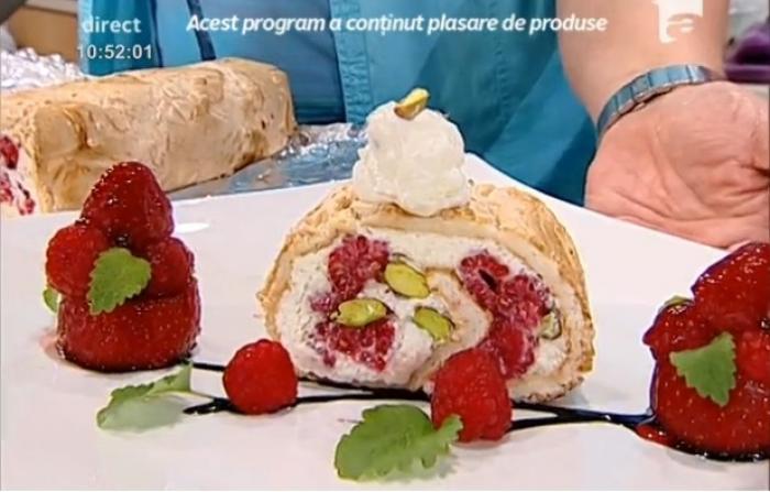 Rețeta lui Vladuț: ruladă delicioasă din bezea cu zmeură