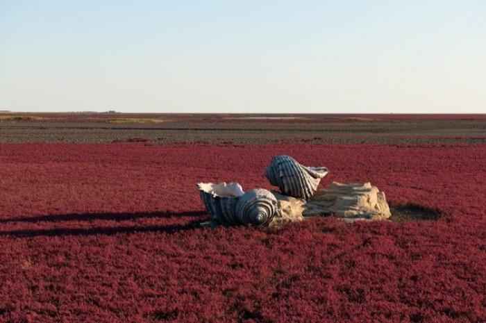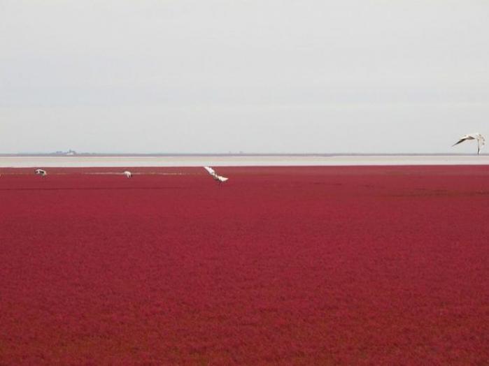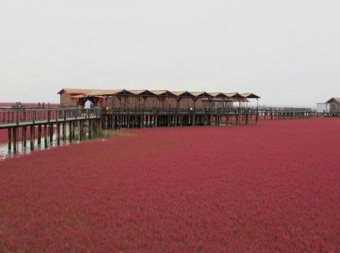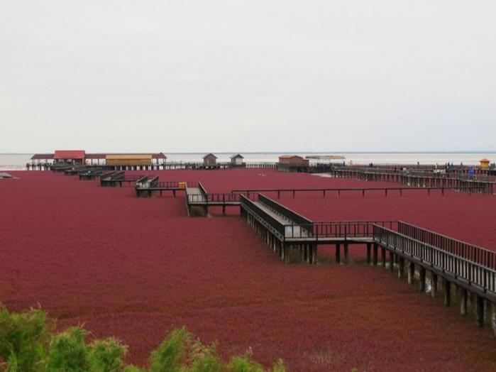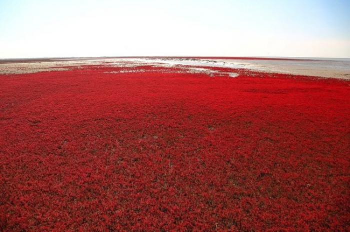 În China, există o plajă roșie și nu este niciun fel de glumă sau exagerare. Numele său se datorează unei specii de iarbă ce toamna se transformă din culoarea verde și capătă pe rând, nuanțe auriu și apoi roșu
