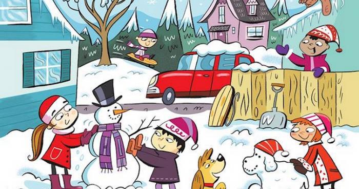 La prima vedere, această imagine prezintă un grup de copii care se joacă în zăpadă. Dar dacă privești cu atenție, vei observa că imaginea ascunde un detaliu inedit.