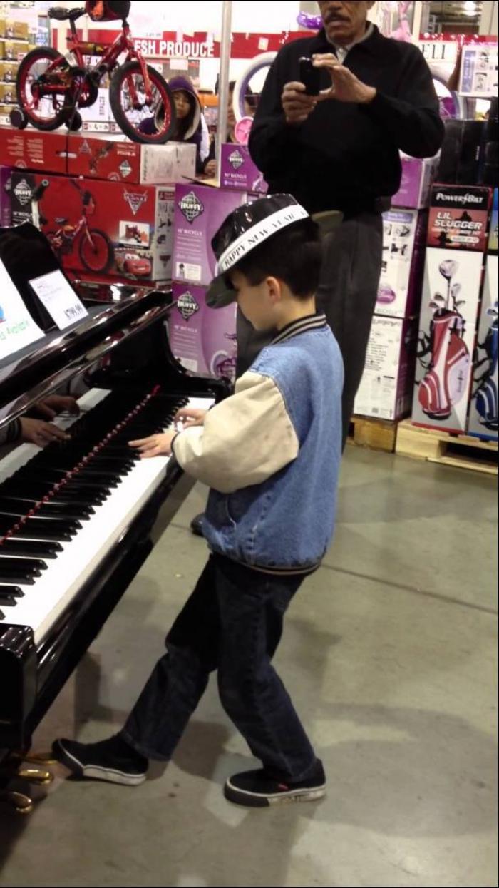 Un copil pe nume Felipe a uimit audiența dintr-un magazin de instrumente muzicale.