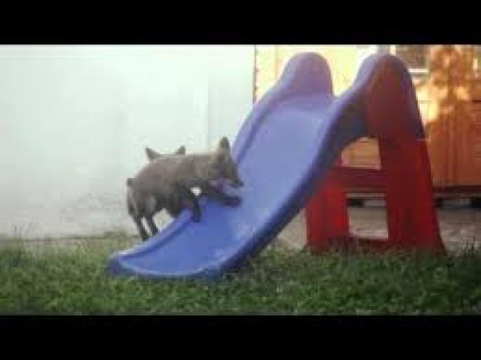 VIDEO! Cum se dau vulpile pe tobogan